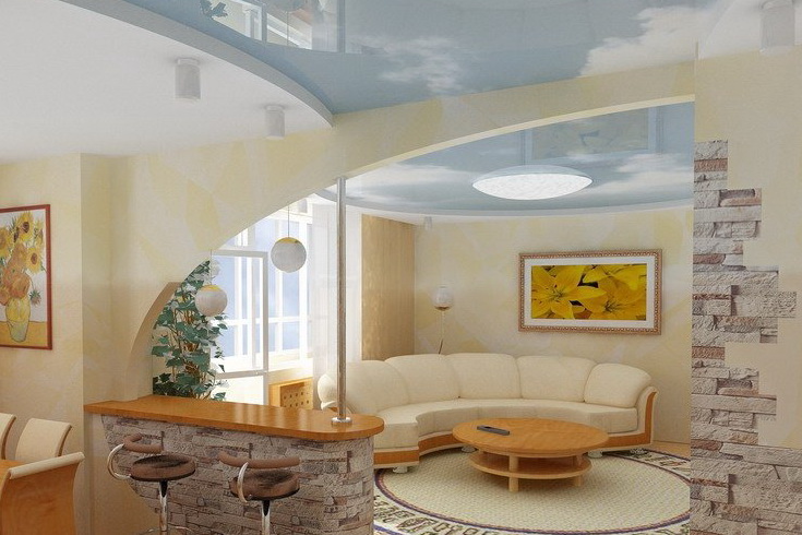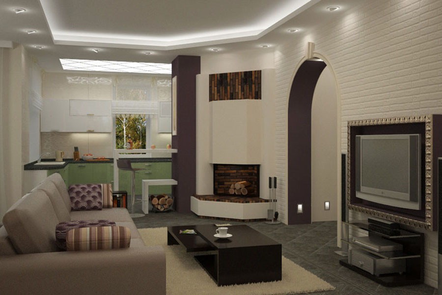 In addition to doorways with the help of arches, you can decorate the interior of the rooms.The arches look spectacular in large rooms, such as a hall or living room. Using this element, you can zoning the room or focusing on a specific area of the room. For example, you can combine the loggia zone and the hall with an arch, it looks elegant and luxurious. Using the arch, you can distinguish between the functional area of the room (cabinets, shelves) and the relaxation area. Often arches are installed above the window openings, in combination with similar arches in the doorways, a common ensemble in the design of the hall is captured.