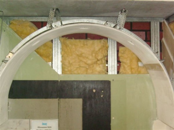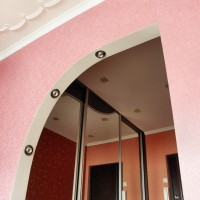 After work, everything is carefully checked, since it happens that the edge of the arc segment extends beyond the edges of the arch, if this happens, the excess of drywall is cut with a sharp construction knife.