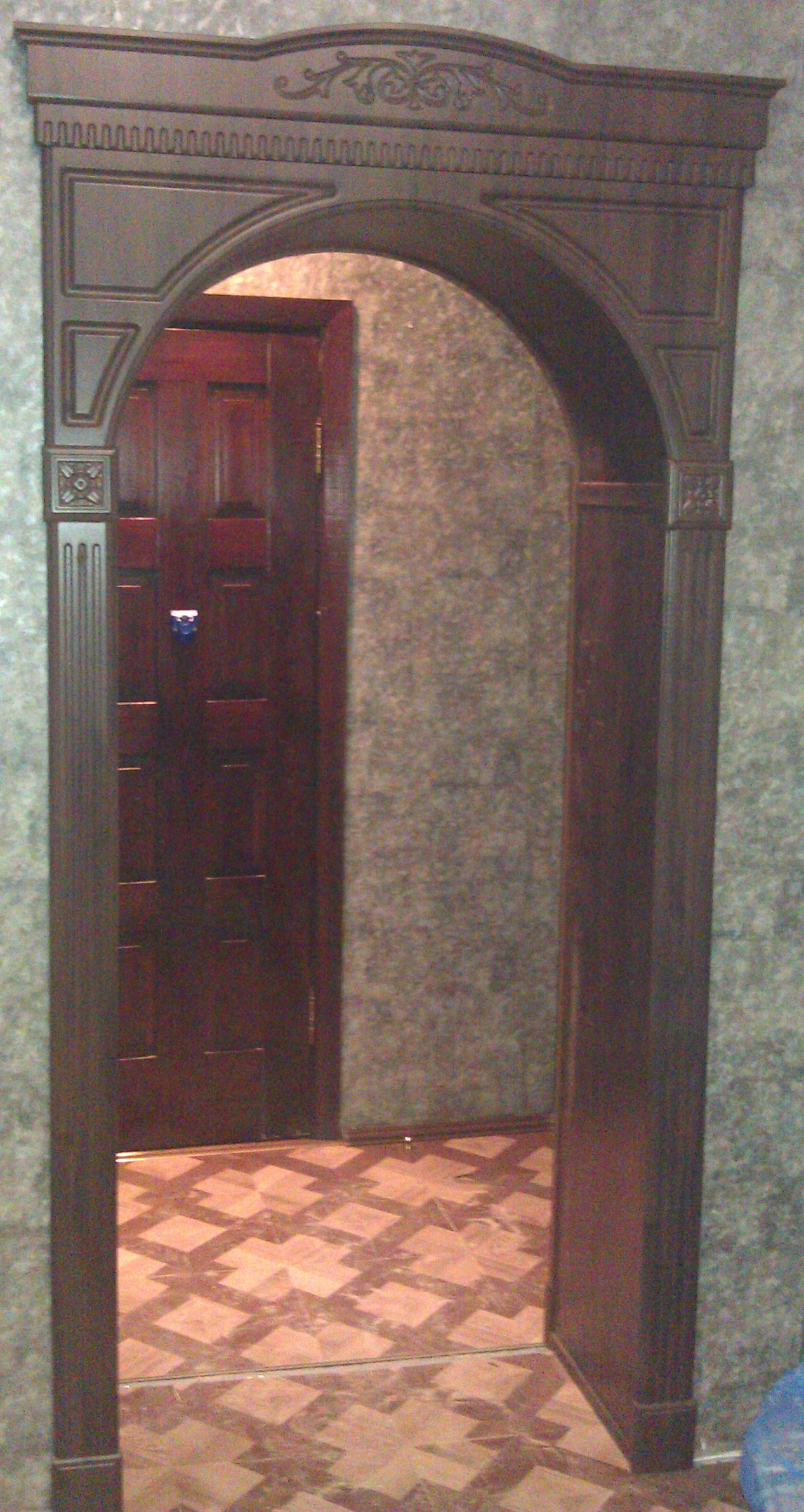 The time-consuming and expensive decoration of the arched opening will be framing with wooden overlays. Firstly, the tree is not cheap, and secondly, the required elements will have to be ordered, which is also an expensive pleasure. Despite this, this method is quite popular, as the wooden lining give a classic style and look very impressive.