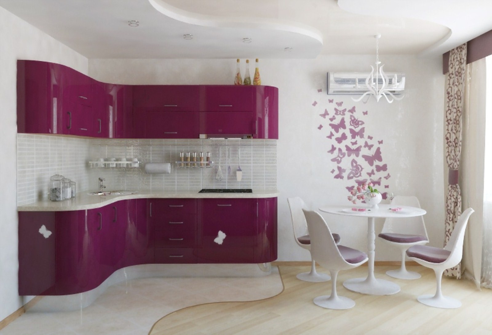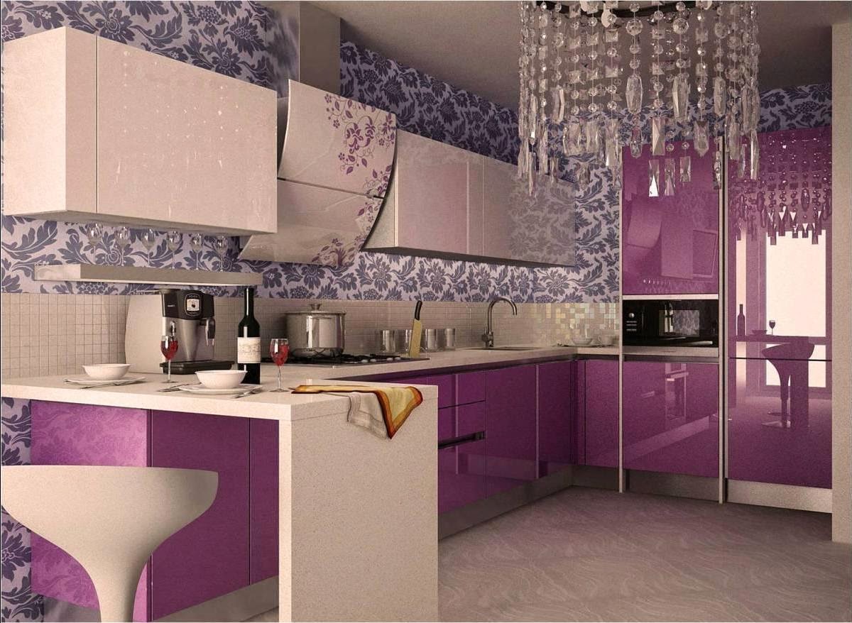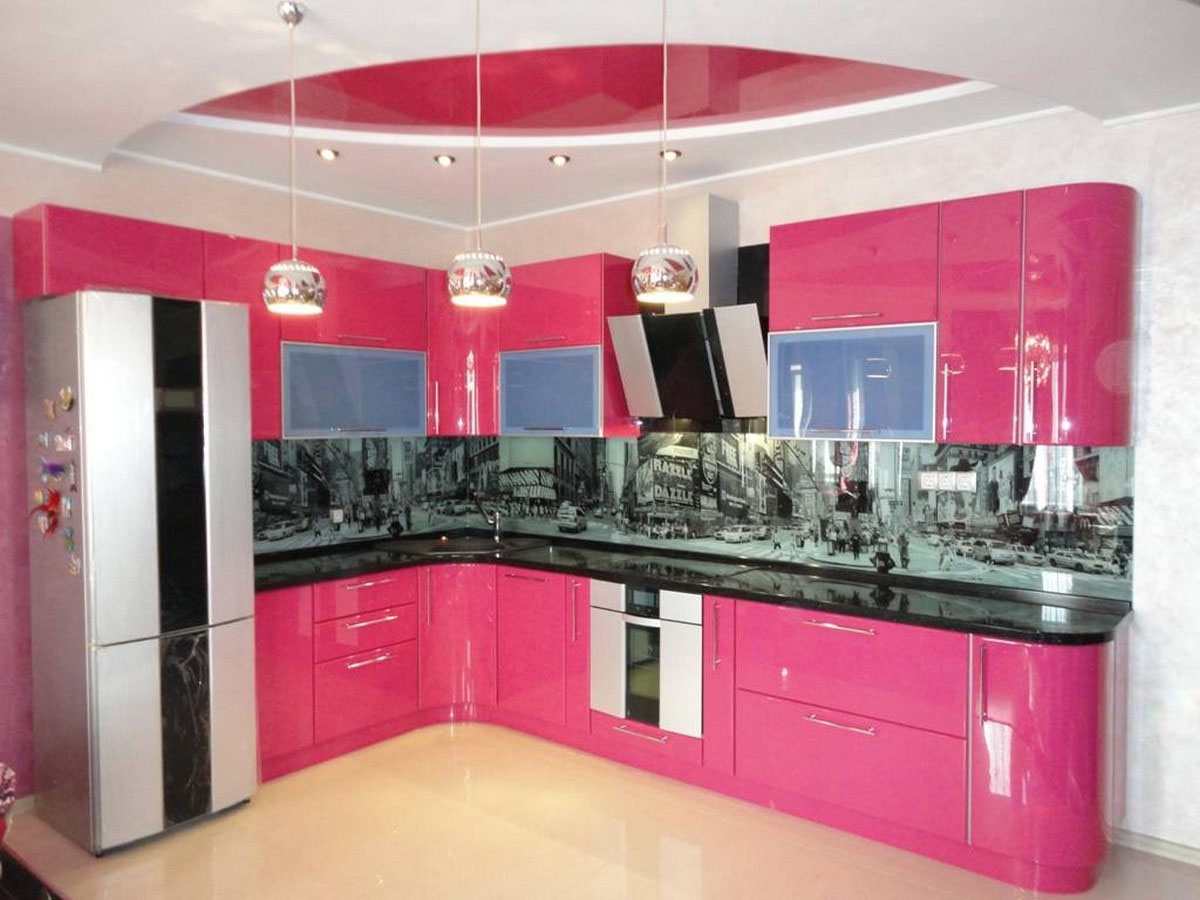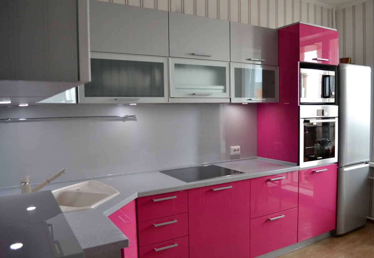 Fuchsia color in the interior of the kitchen