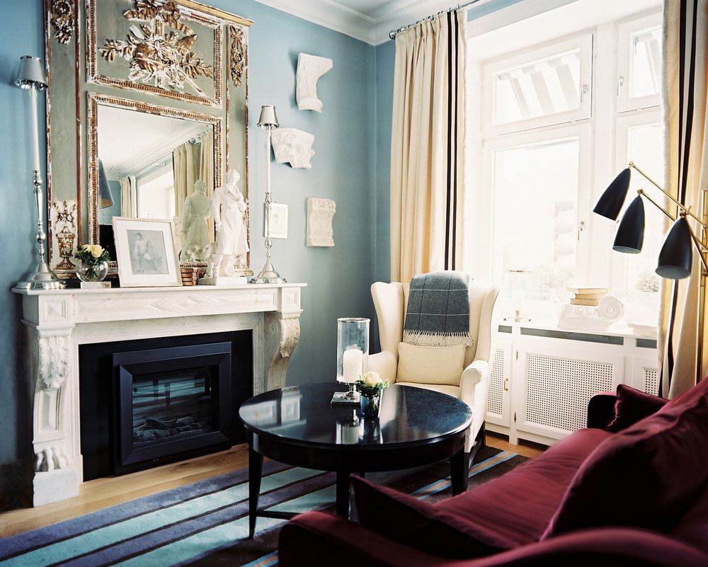 One of the shades that create a classic style with the color of Marsala will be turquoise and greenish-blue tones. There is no rule, it all depends on the mood created in the interior. Pale blue will create a calm atmosphere. Intense turquoise color will give energy and brightness.