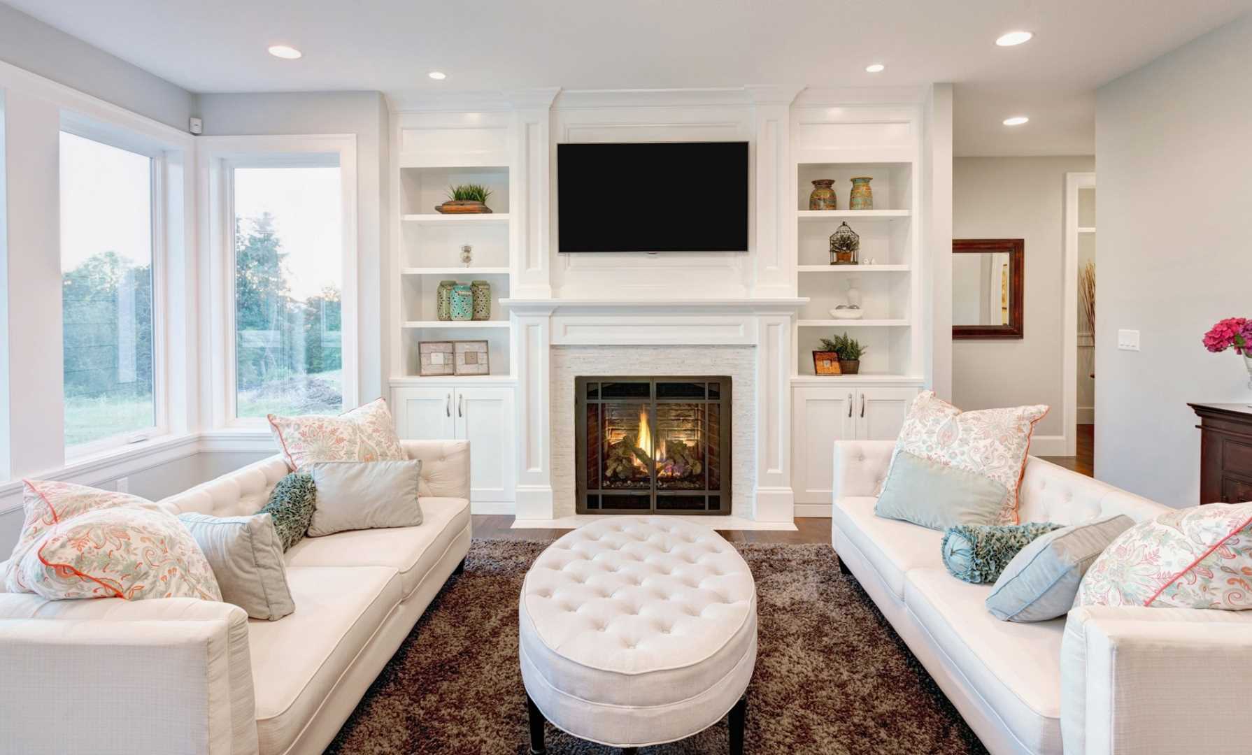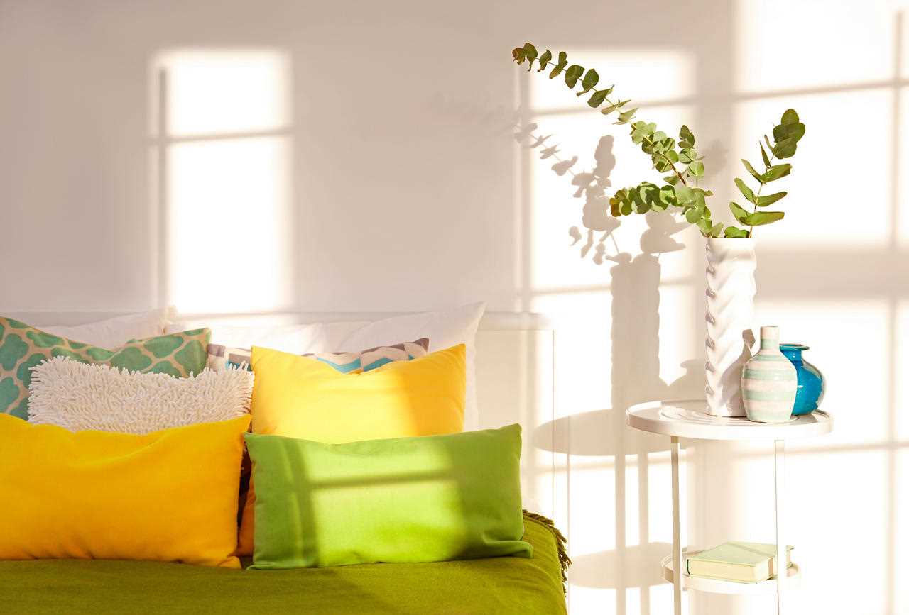 Multi-colored pillows on the sofa will add color to the interior