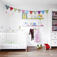 Light colors visually expand the nursery, make her lighter as well serve good background for bright decor elements. Most appropriatewill be simply paint the walls with white or milk paint, cover with light plain wallpaper or sheathe wooden panels. This is a classic style, but for children, not a place for boring tones. Show your imagination, experiment, add shades and textures.