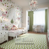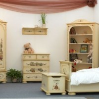 Facades of cabinet furniture characteristic of the style - with moldings and panels, painted and hand-carved, decorative inserts and bent legs. Furniture was previously made by hand, and all of these beds and cabinets, bedside tables and tables can be very simple or, on the contrary, show a special grace. The style is suitable for a spacious bedroom for 2-3 girls and for one child in a small room.