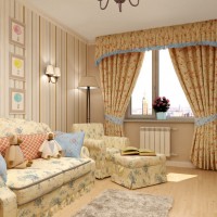 - For wall decor, it is not necessary to limit yourself to wallpaper with a small flower; wallpaper for painting will do, which will change the color according to your design. They use textile wallpapers for the Provence style, most often jacquard ones with matte patterns and a glossy surface. It looks luxurious, but with a competent refinement of the interior design, the provincial charm will make its own adjustments.