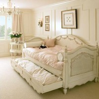 - A bed for this style is a special attribute. They were made large and wide, solid, "outgrowing" with a carved headboard and foot. It was often supplemented by spacious bedside tables, moreover, on both sides of the bed.Today, a lot of samples of children's furniture are produced, including stylish beds and folding sofas, which organically fit into your design nursery in the style of provence for a girl.
