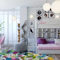 The brightest lighting should be in the study area, where schoolgirls do their homework. Original fixtures may be part of the decor. Phosphorescent colors or luminous stars on the ceiling, depicting the night sky, they will save children from the fear of the dark.