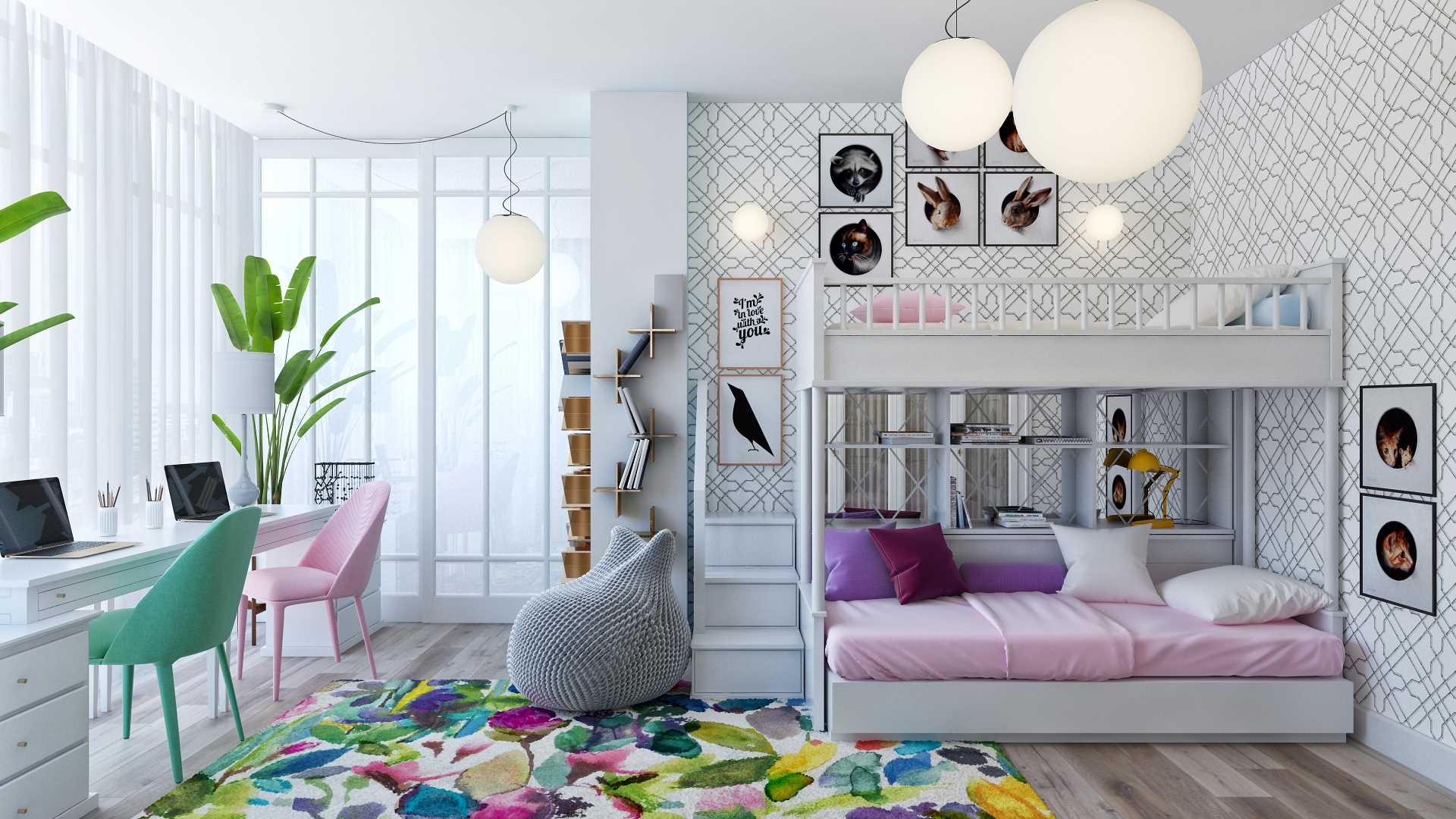Small-sized city apartments do not allow each daughter to take a separate bedroom, so you have to combine the children's room for girls of different ages in one room. They have different needs and interests, and living in the same area sometimes brings problems.