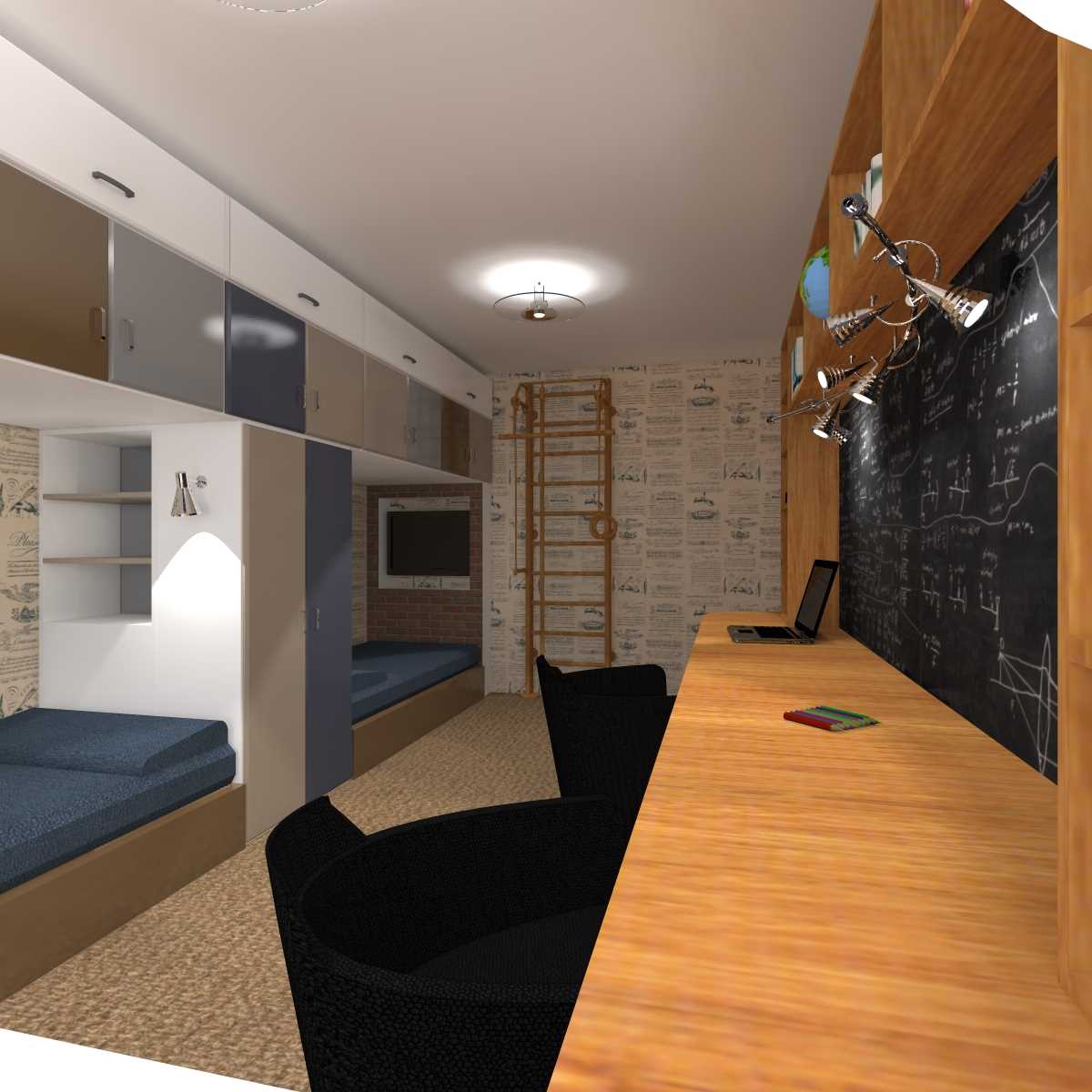 For training. It is recommended that you use a separate desktop for each boy. Given the small area of space, transformer furniture or folding tables will be the best solution. An important nuance in the working area is considered to be sufficient lighting of the desktop, which will become a guarantee of good vision for children.