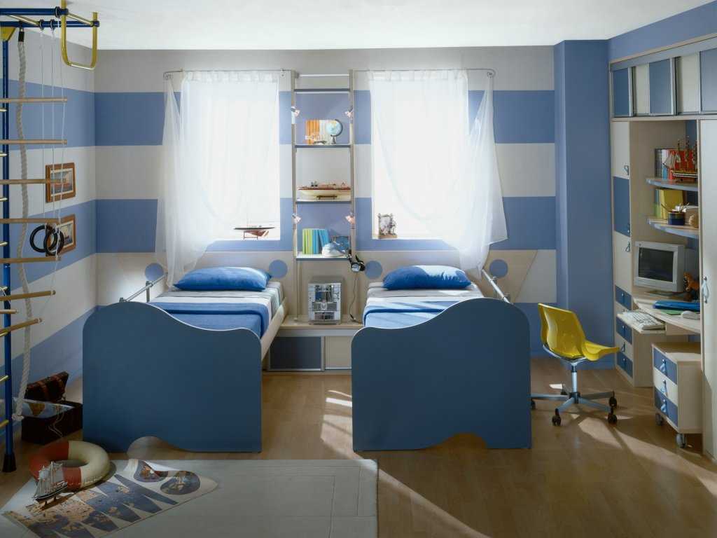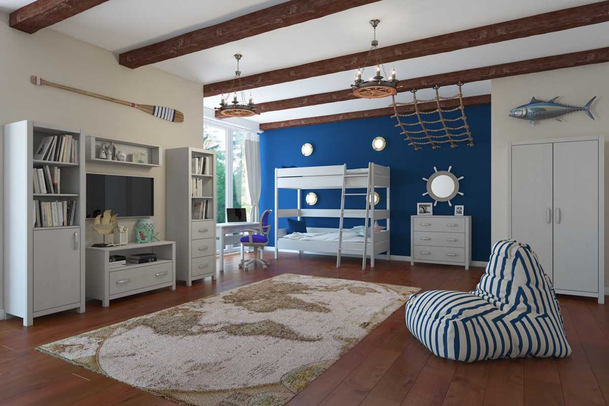 Depending on the hobbies of the child, it is necessary to select the general style of the interior. For a lover of the sea, it is necessary to design the walls in blue, and purchase a bed in the form of a boat or ship. Additional accessories can be a globe, a spyglass.