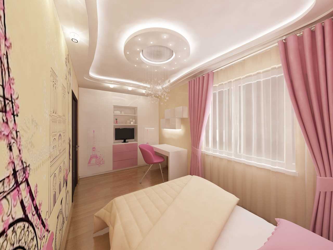For a young lady, the room can be decorated in the style of a Disney princess. To do this, you can apply photo wallpaper on the walls, decorate the ceiling with stars and applications.