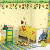 - For a child from two to five years old, who already develops imagination and fantasy, they recommend thematic wallpapers with the heroes of fairy tales and books. Designers suggest picking up design with cartoon characters.With wallpaper you can balance or activate the child, for example, neutral shades are suitable for an active baby, and brighter ones for a calm one.
