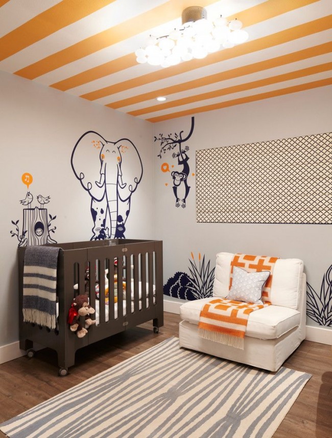 This can be drawings on wallpaper or textile elements, paintings on the walls or toys in the form of wild animals.