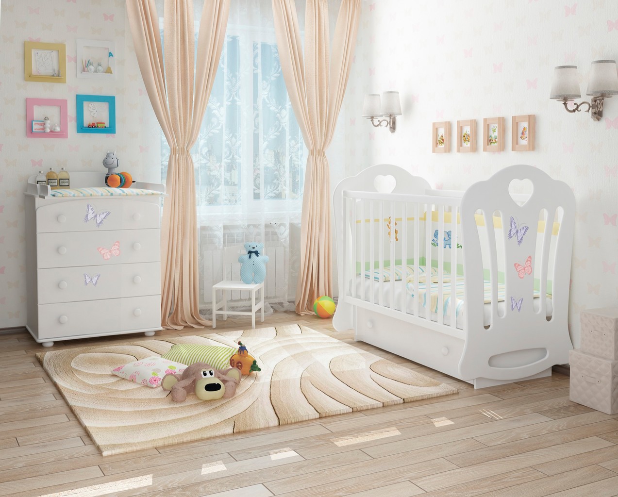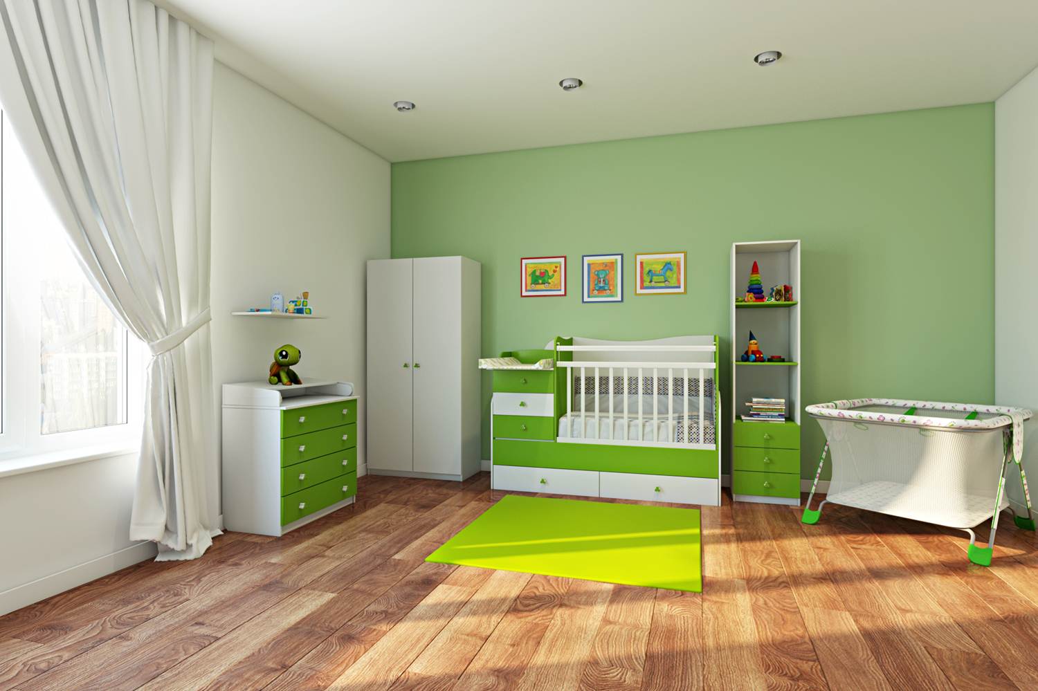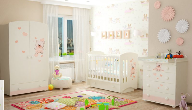 The most important rule when decorating a room for a newborn is the use of environmentally friendly materials. All surfaces and objects in the room must be harmless to the baby.