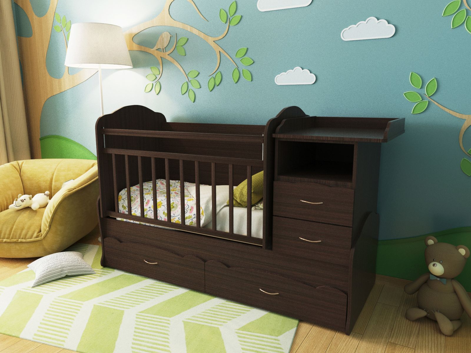 The kid begins to get acquainted with the world around him very gradually - through voices, smells and touches. Mom becomes his guide in this large and unfamiliar place. Therefore, in order for the child to grow up in comfort and contentment, when arranging the children's room, it is necessary to pay due attention to the needs of the mother, because the baby's well-being is a reflection of her mood.