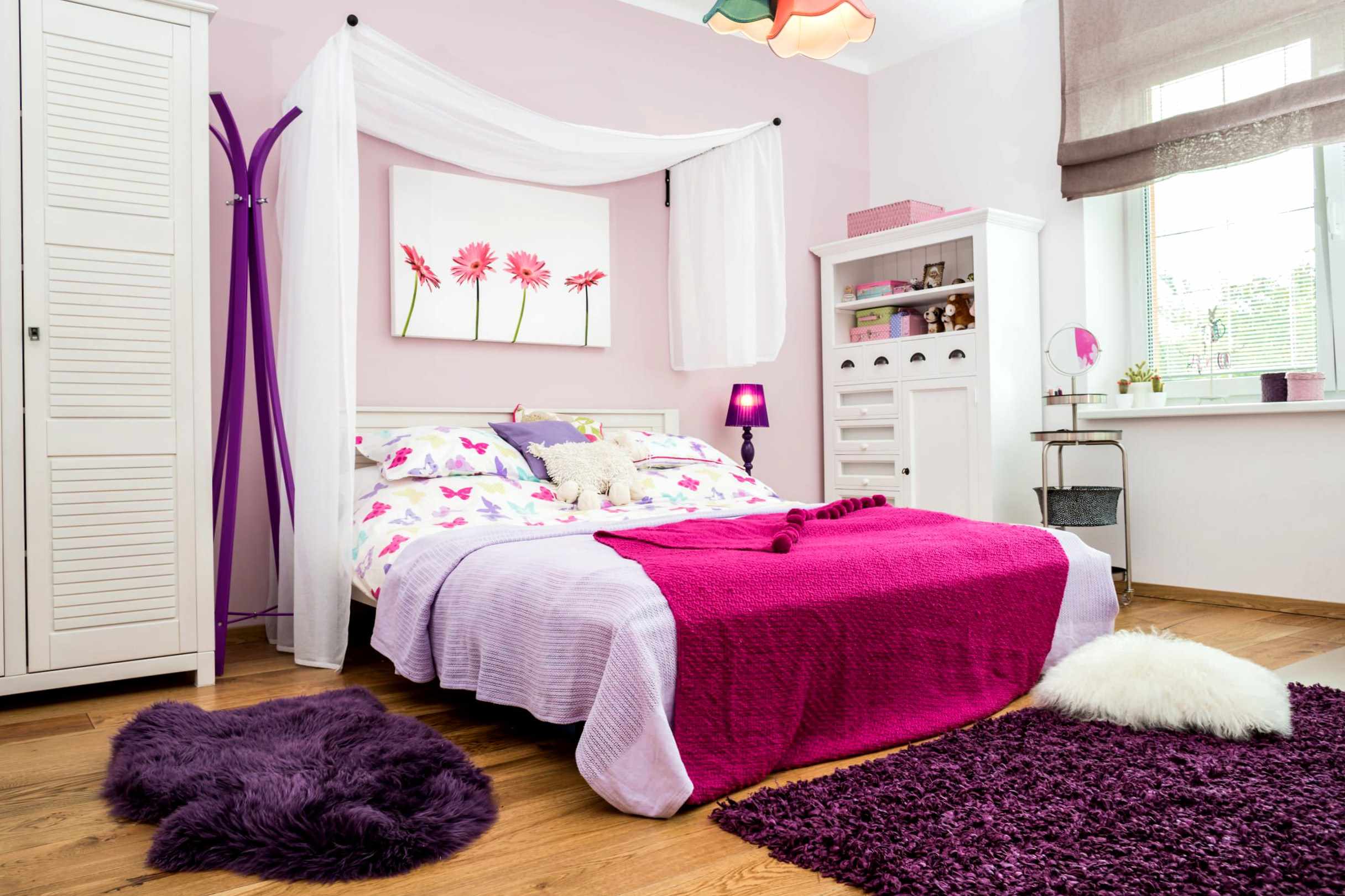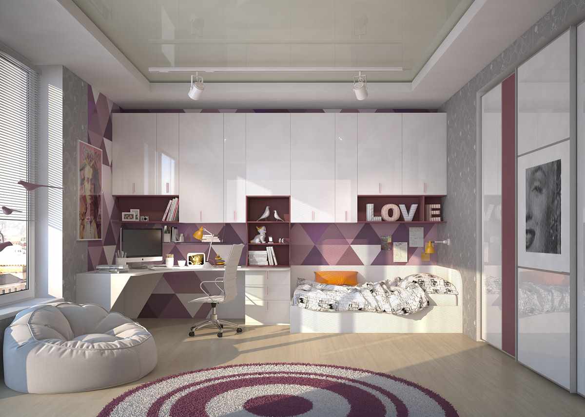 If all these components are in place, you can safely buy furniture. However, try not to clutter up the bedroom with unnecessary items, as a young lady needs free space to do her favorite things without leaving the room.