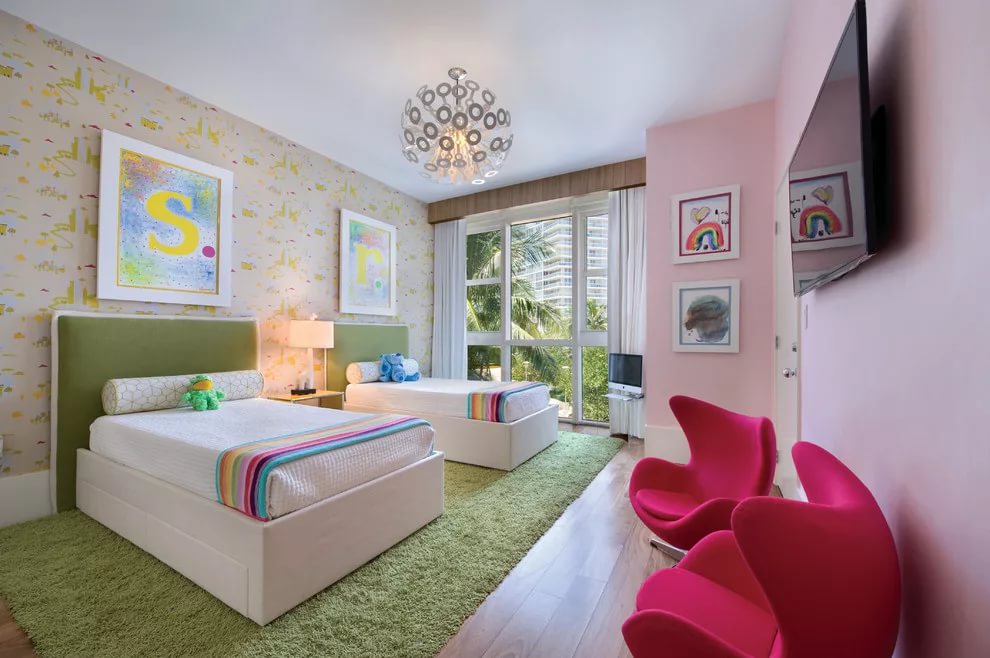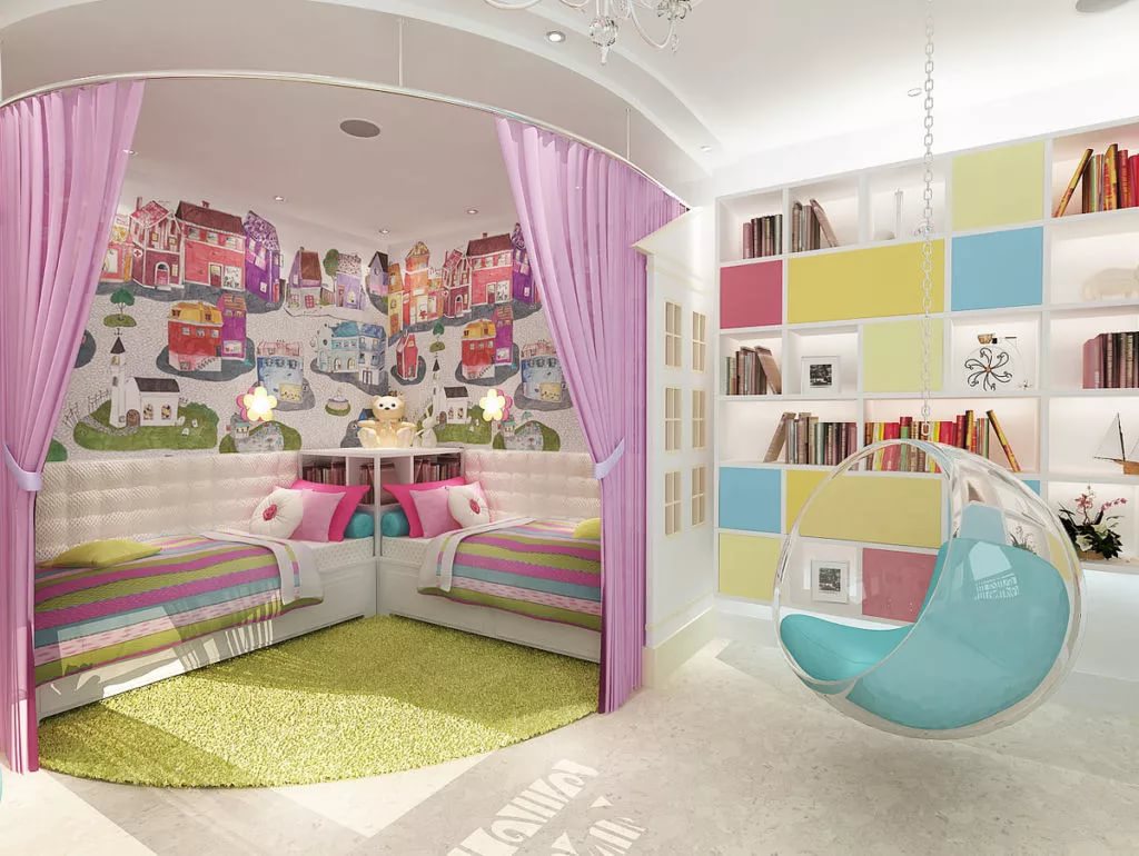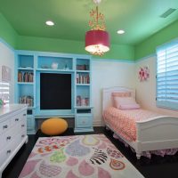 The lighter the walls, the greater the savings on fixtures. After all, it is known that white color reflects all the rays of the spectrum. White walls and a ceiling for vision are the most useful. Accessories of any color will be combined with light walls, for example, a pink bed, a grass-green rug, a yellow lamp in the shape of a month. Another good idea is to design everything in natural colors. It is milky, creamy, the color of unpainted linen, dark green. They will create a calm atmosphere, they will not be annoying.