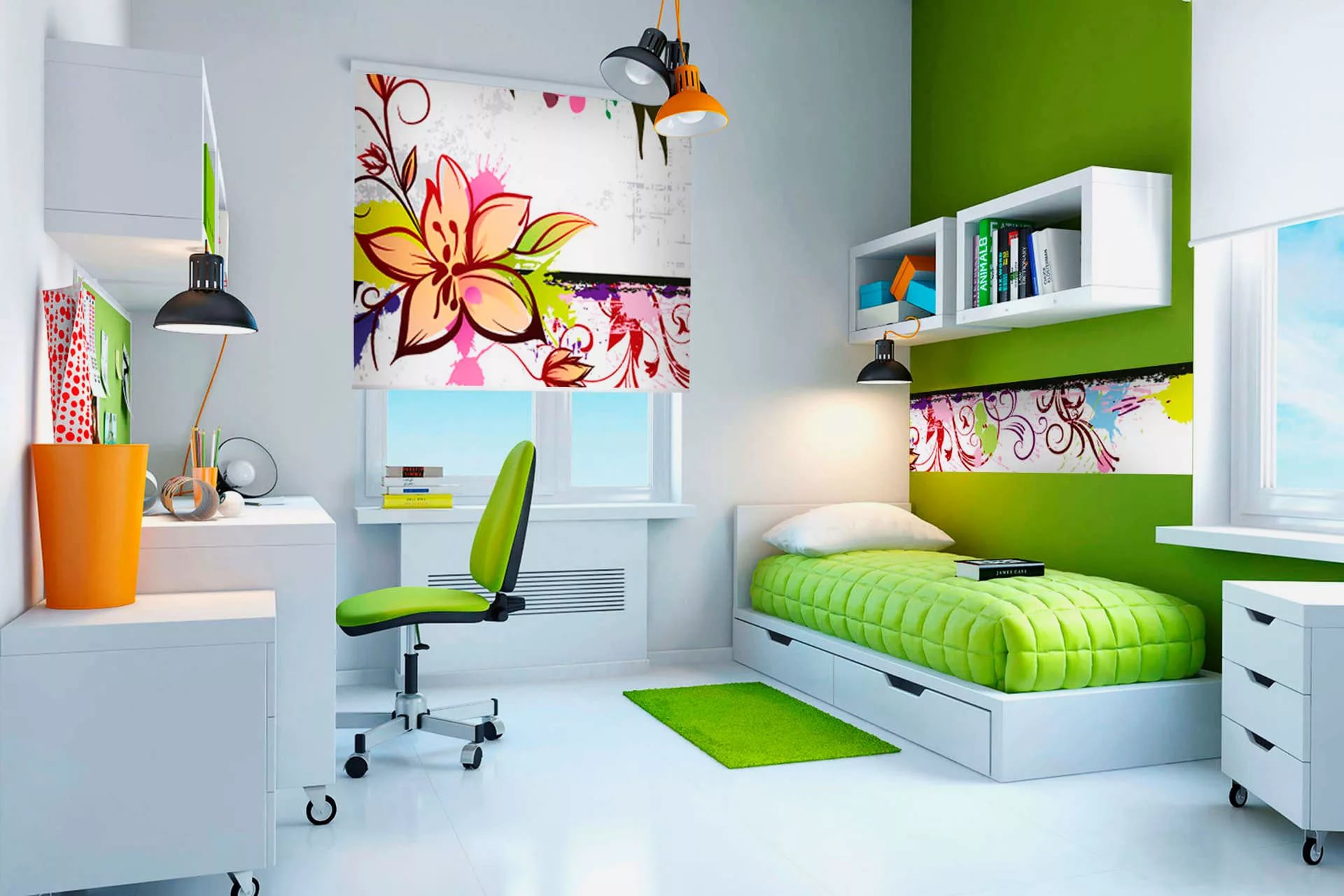 Decorating a room in cool, bluish tones will have a calming effect on a hyperactive teenager. A universal solution is an eco-style design: milk walls and a light ceiling painted with latex paint. This year, active colors are in fashion - bright green, dark blue, sunny yellow, pink. They can be used for individual color spots, for example, a chair or a cabinet can be bright. The remaining tones must obey the soloists.