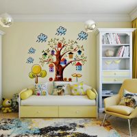 Again, wall murals, subjects of a wide variety, from pastoral landscapes to deep space objects or comic book characters, came into fashion. The wall of the nursery can have a rather discreet decoration - strips of the color of wood or the shade of the wall. They are placed both parallel or perpendicular to the floor, and diagonally. This allows you to achieve various decorative effects.