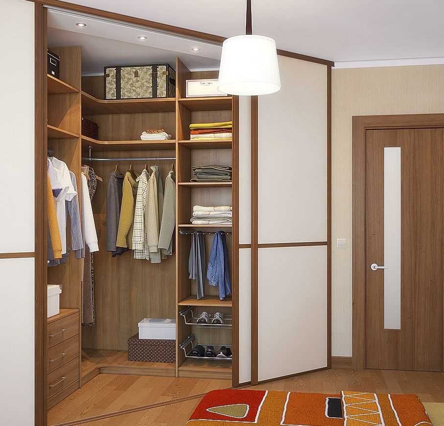 There are different types of wardrobe design solutions when it comes to a few meters. A full-fledged storage of ordered clothes and shoes with sorting things is possible only in a separate room.