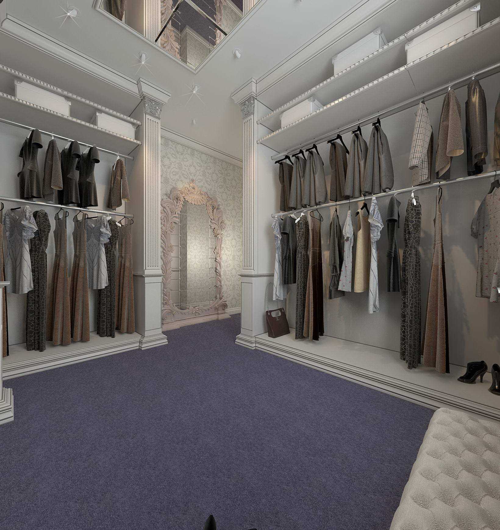 For this purpose, not only the layout of shelves and various departments, but also the design of the classic wardrobe room.