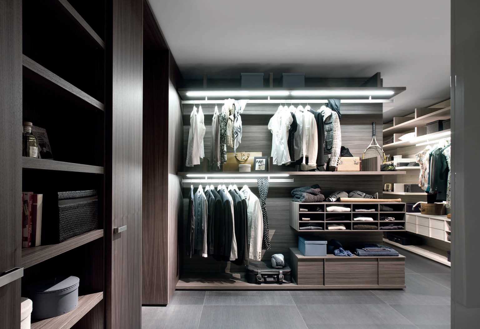 Illuminated spacious walk-in closet design