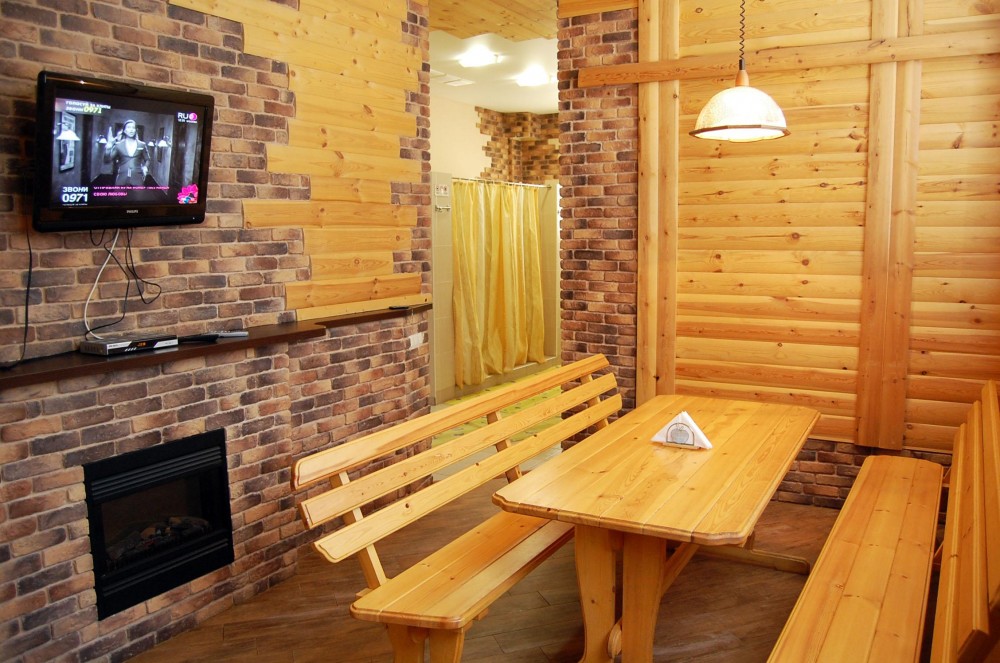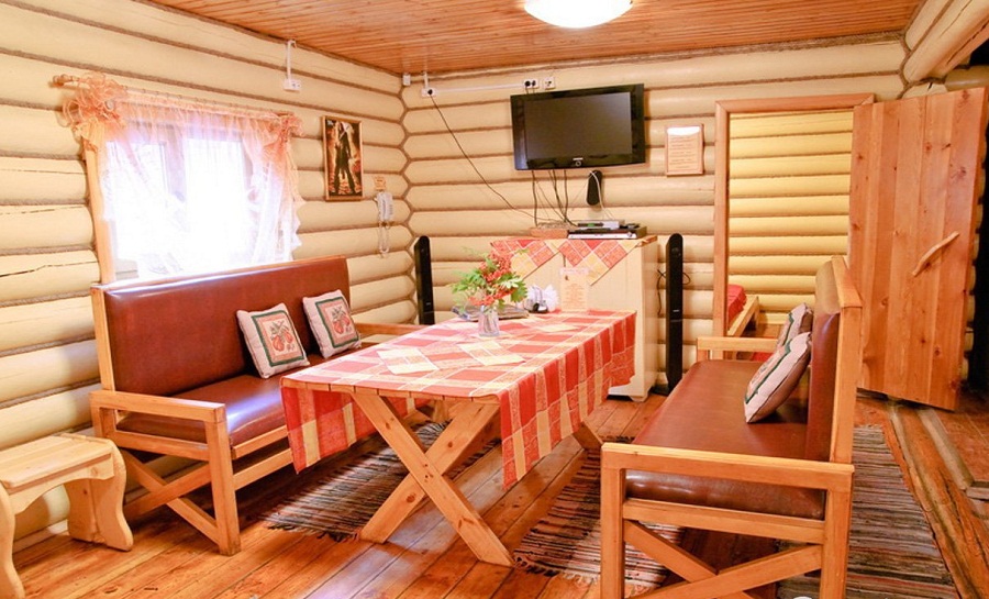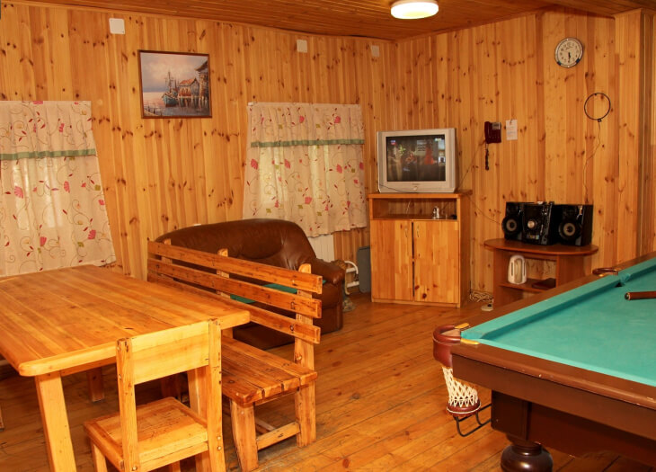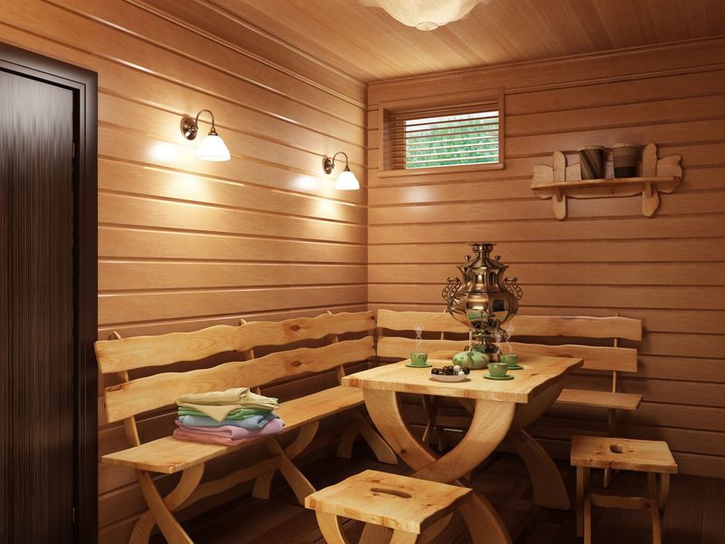 Very often, the bathhouse is a gathering place for relatives, friends and acquaintances. Be sure to put a large table with a samovar, where everyone can gather after the steam room for tea drinking and a pleasant conversation. Installing a pool table will unite you for an exciting game. And comfortable sofas contribute to relaxation.