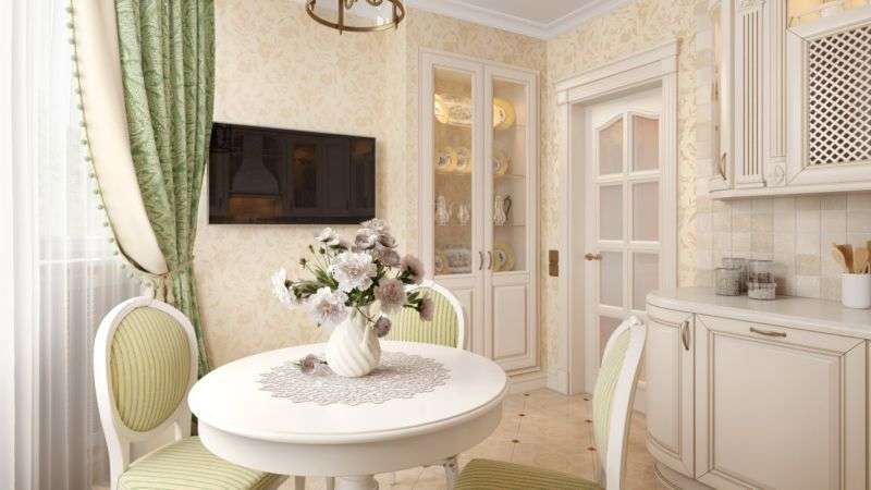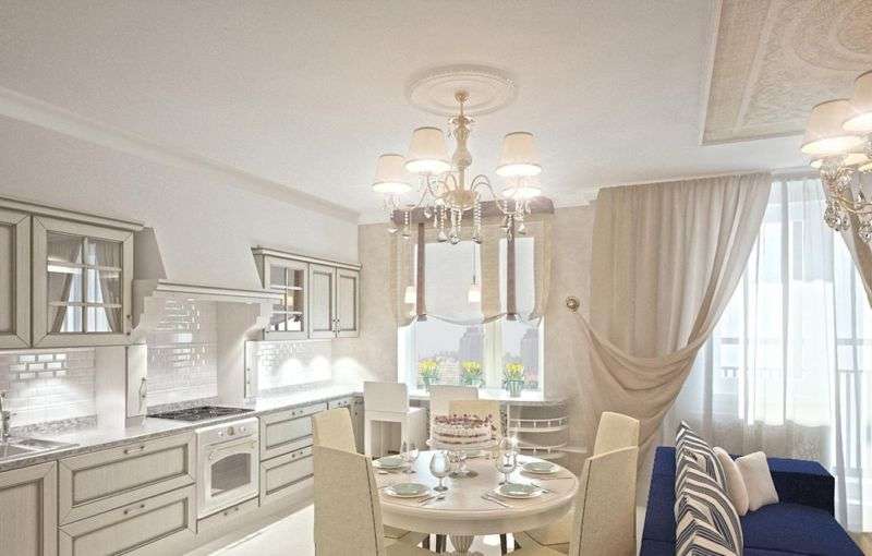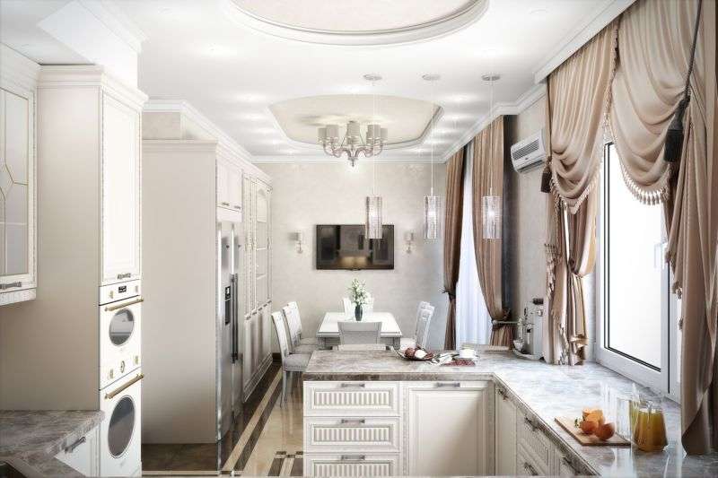 If a classic design is chosen to design an apartment, then you must adhere to certain of its rules. The main one is a competent combination of luxury and practicality. As a rule, there is not as much space in the apartment as we would like, but it is worth remembering that in a classic-style kitchen, dinners should not be held. For these purposes, a neighboring room is used - a dining room. In the apartment, a similar effect can be achieved by combining the kitchen and the living room.