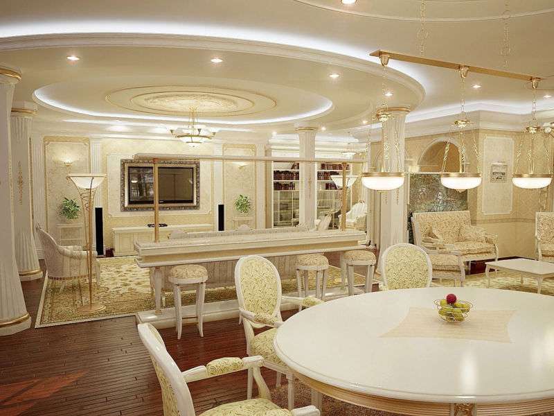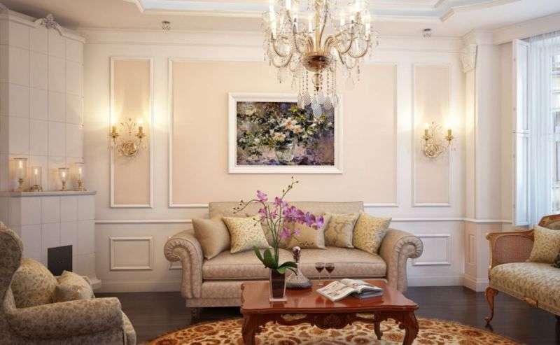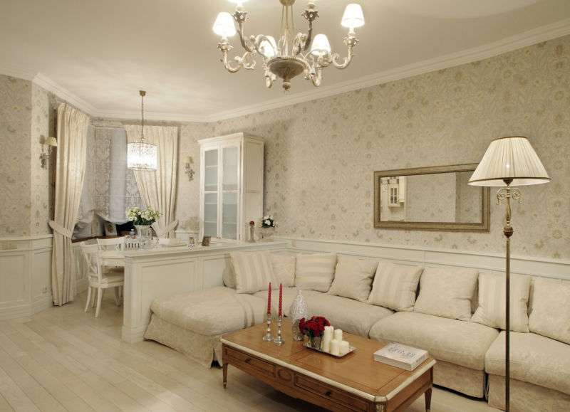 For classics, light pastel colors are characteristic, which can be seen in abundance in the walls, ceiling, furniture.