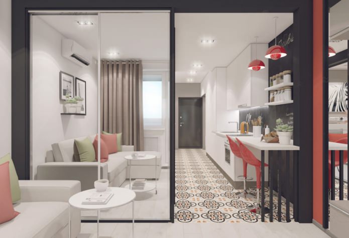 These methods are quite enough for conditional delineation of space to fit into design of a small studio apartment. Using modular furniture and all kinds of transformers (folding after use), it is easy to expand the possibilities of compact housing.