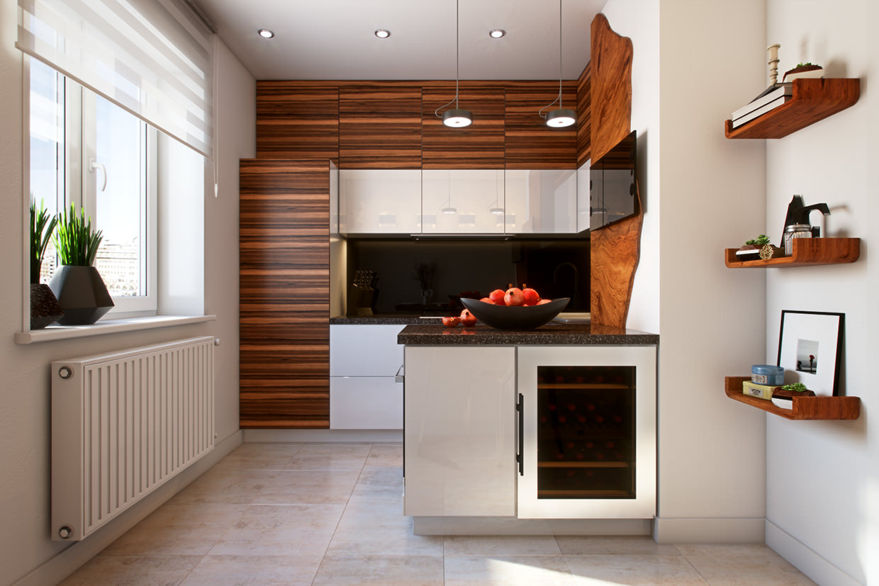 Equipping one-room apartmentneed to increase space visually and actually. Basically, kitchen separated from the rooms the wall, which occupies an additional square. To begin with, it is worth determining whether it is a carrier. If possible, it is better to eliminate the wall and combine the premises into one. Such layout allow more efficient use area. If there is no way to tear down a wall it is necessary to increase the door opening, remove the partitions that separate the room and the hallway.