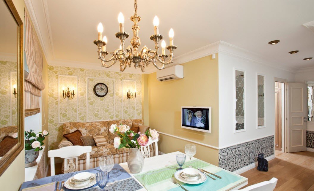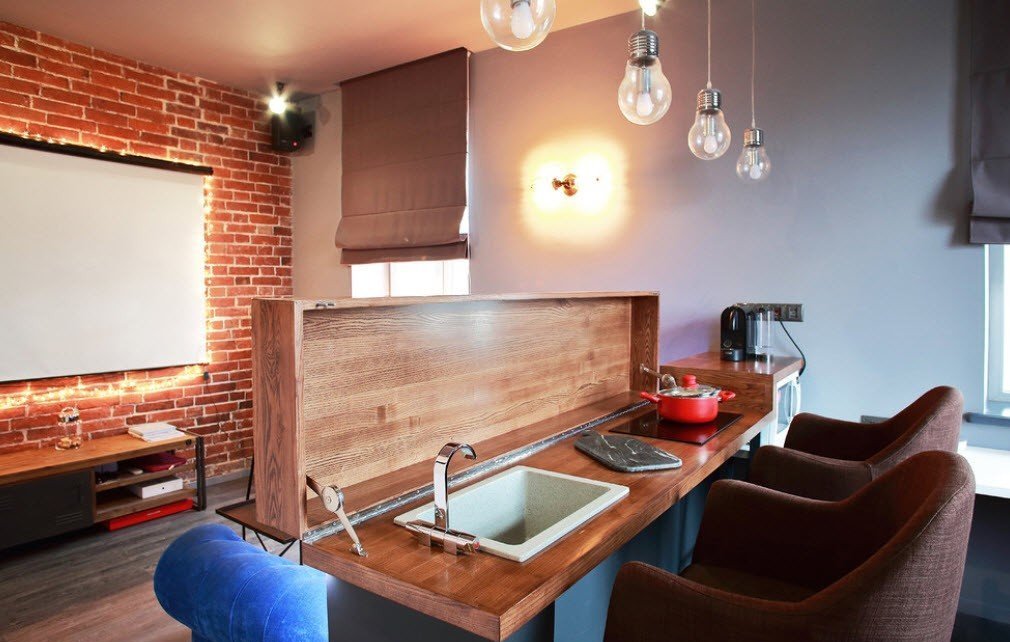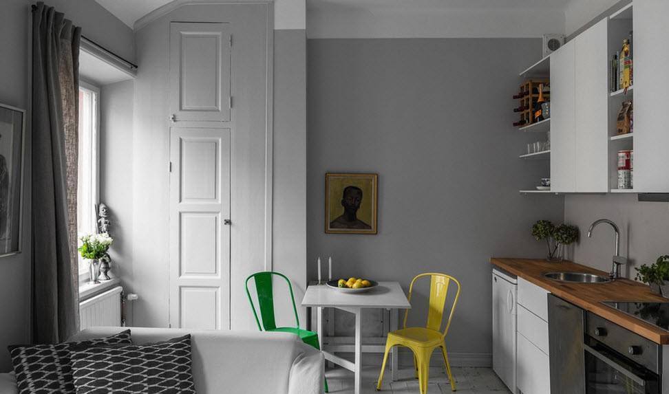 In one available room, it is necessary to arrange recreation and work areas, a dining area, because in small kitchens, as a rule, there is no place for a dining group.