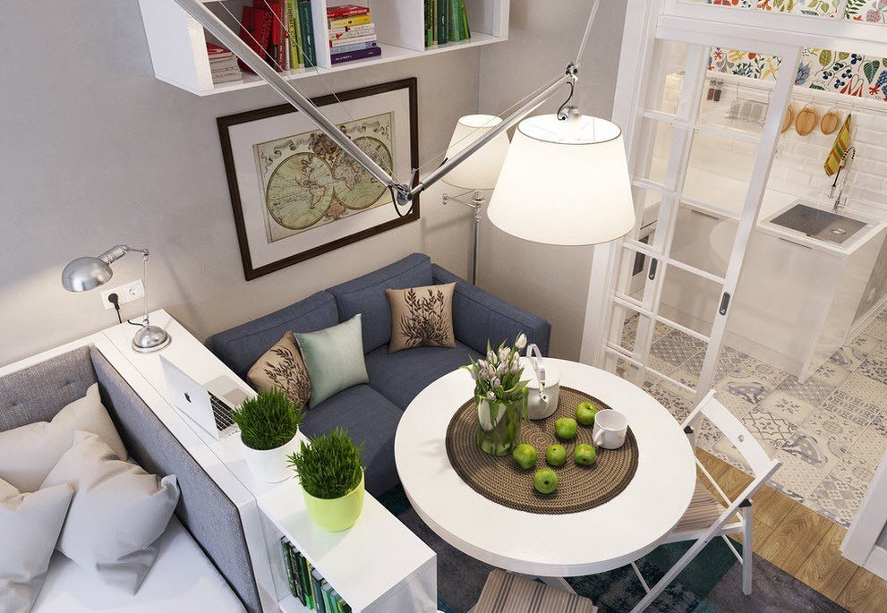 Before you buy furniture for a little one-room apartment, you need to make a preliminary plan, which shows the alignment and used every free centimeter. All interior items that have not been used over the past year are best discarded.