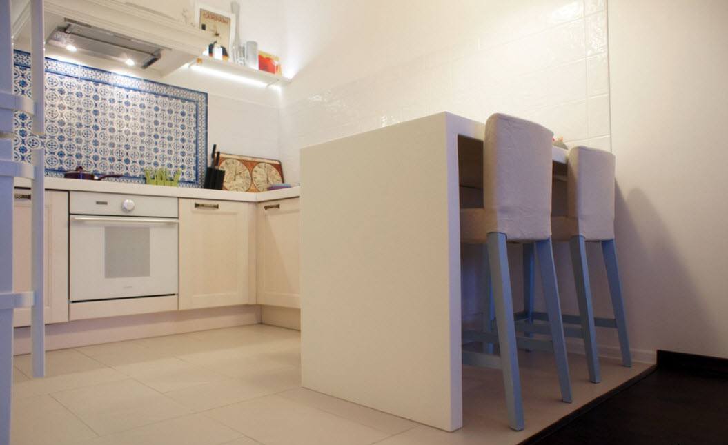 The Khrushchevs are “famous” for their small rooms. To make them larger will allow overstatement of the ceiling. It is desirable that the ceiling and walls are decorated in bright colors. This will visually expand the space. They can be plain or in vertical stripes.