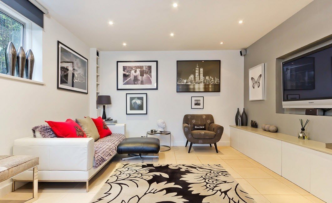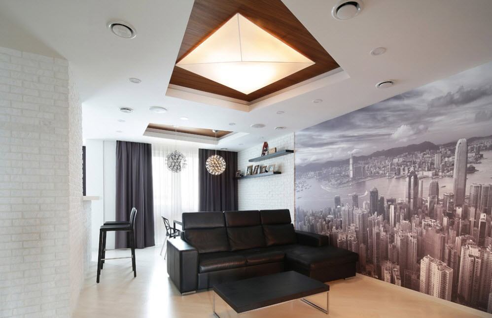 Each zone can be highlighted by spotlights mounted in the ceiling. There may be a main chandelier, but if it is not necessary, then the absence will not spoil the interior.