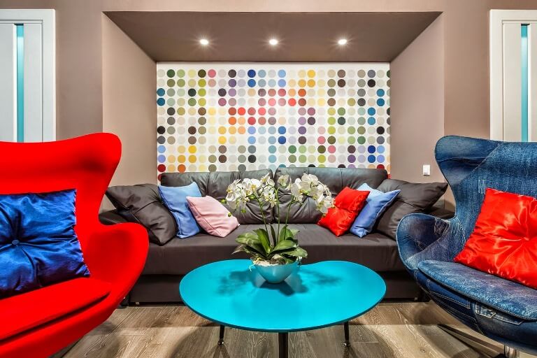 When designing a room, it is necessary to take into account how often it is visited by residents of a house or apartment, how many people live. If the living room is designed for 4-5 people who spend a lot of time there, then the tones should be calm. But for rarely used spaces, you can apply more saturated colors, giving a certain festive atmosphere.