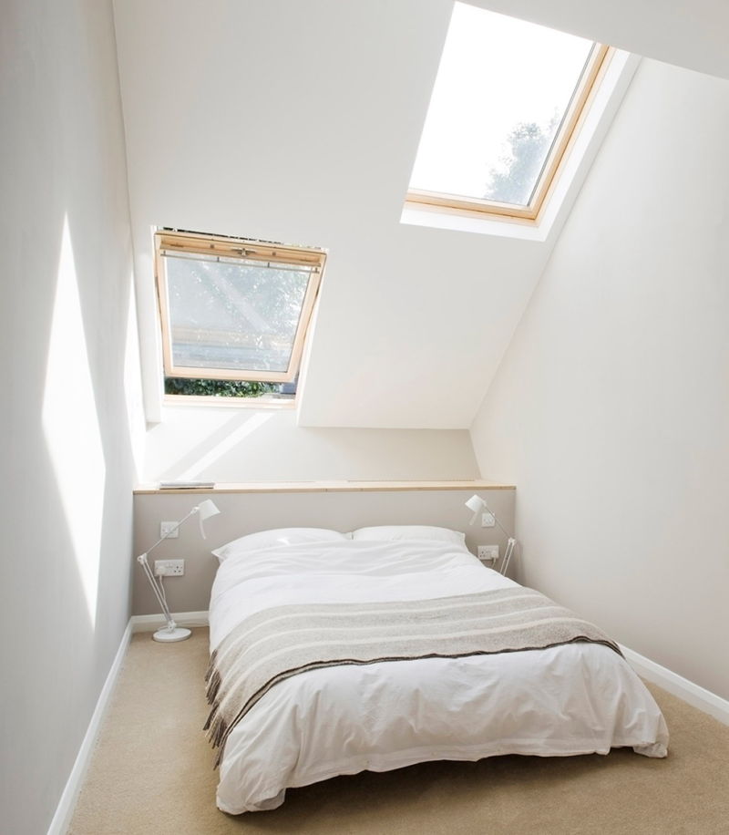 If the room is for a couple, you have to install a large, double bed. It is best placed at the end of the bedroom, right by the window. At the same time, if the width allows, the bed can be deployed sideways to the window. If this is not possible, you will have to install it at the head of the window opening.