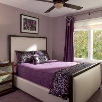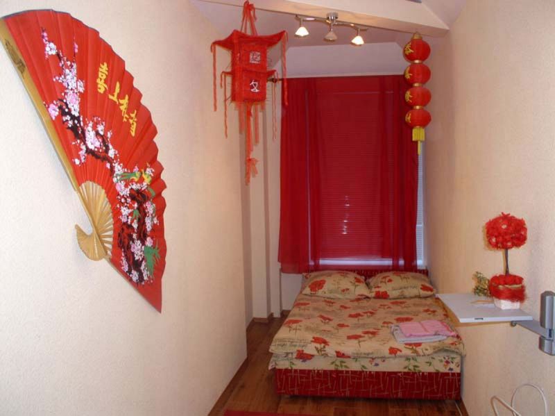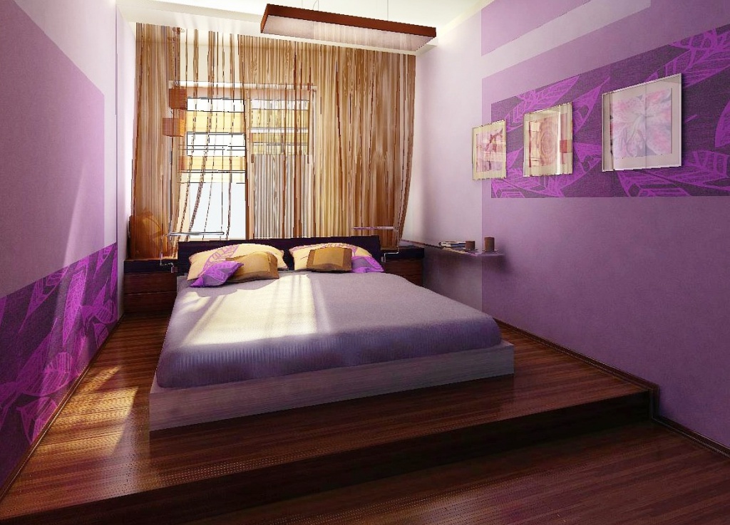 Finishing short walls must be done necessarily with bright colors. Plain wallpaper or glass wallpaper will fit in well, which can later be repainted. So interior design will not bother with time. The window opening must be curtained. To do this, choose Roman or roller blinds (for more details on choosing curtains, see our article), since the head of the bed does not allow the use of long fabrics (for example, Italian, Austrian).