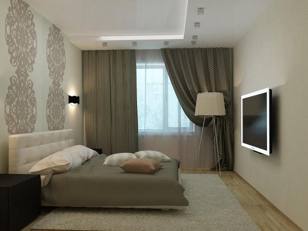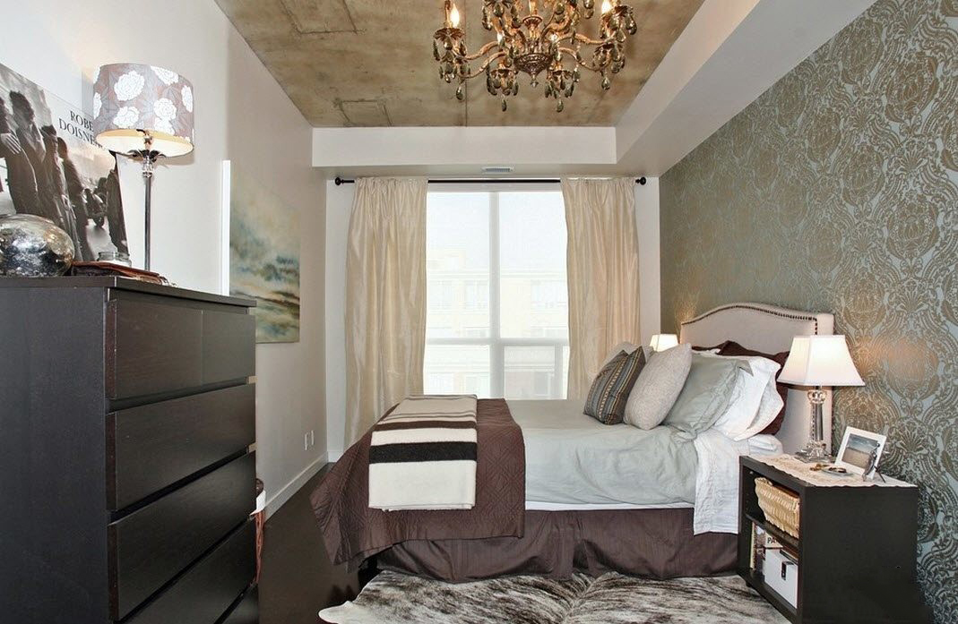 - Patterns. Affect the visual perception of the size of the bedroom. Remember this when you purchase wallpaper. Smooth lines on light paper can add a quadrature.