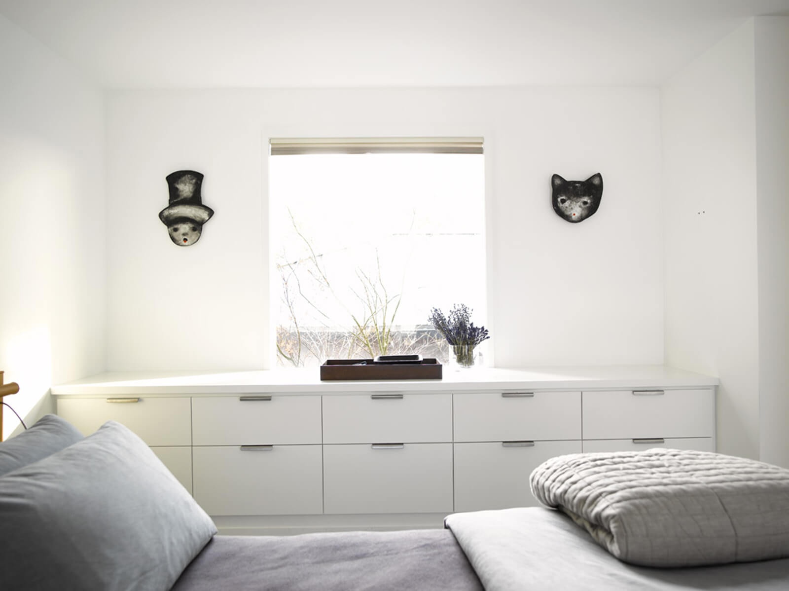 A room with one window is better not to separate the cabinets and high partitions