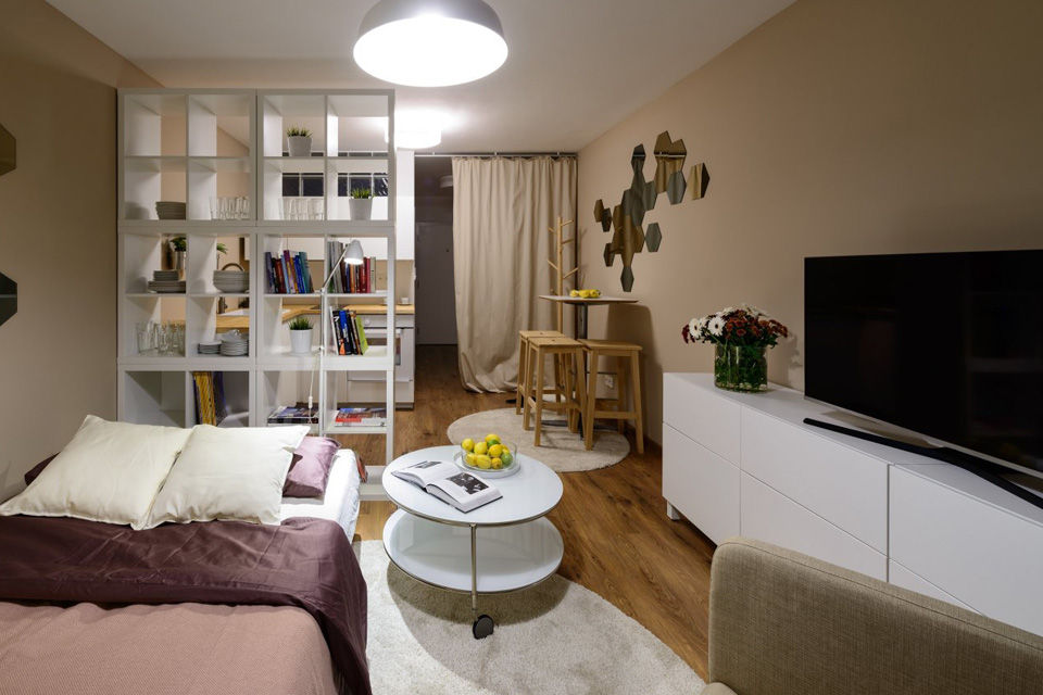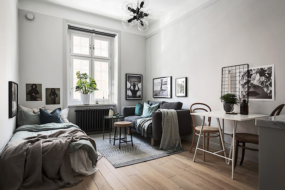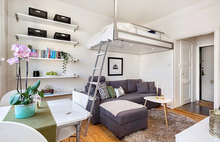 The owners of small apartments at home always have something interesting, unusual. The lack of square meters makes you come up with extraordinary solutions that can become original jewelry. Let's visit the owners of small studio apartments.