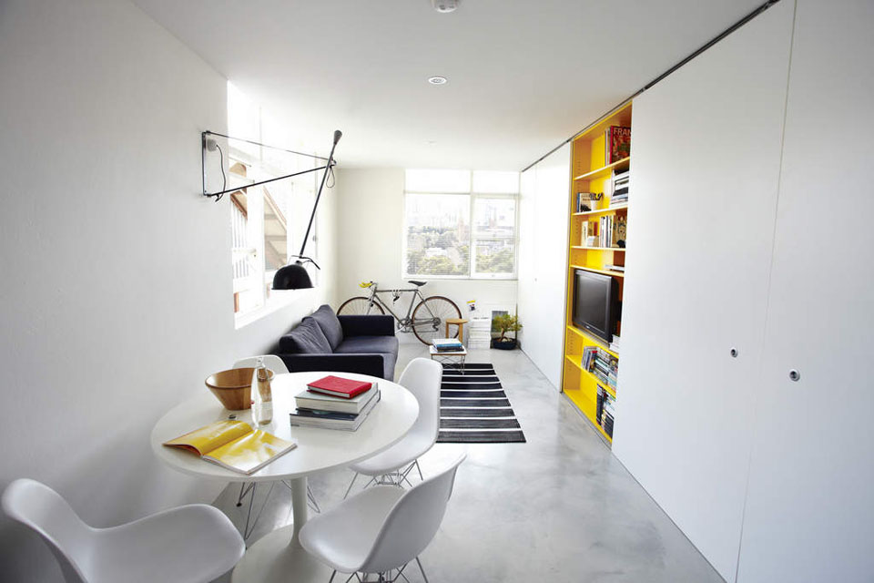 Combining all rooms in one space is a good solution in terms of saving usable space