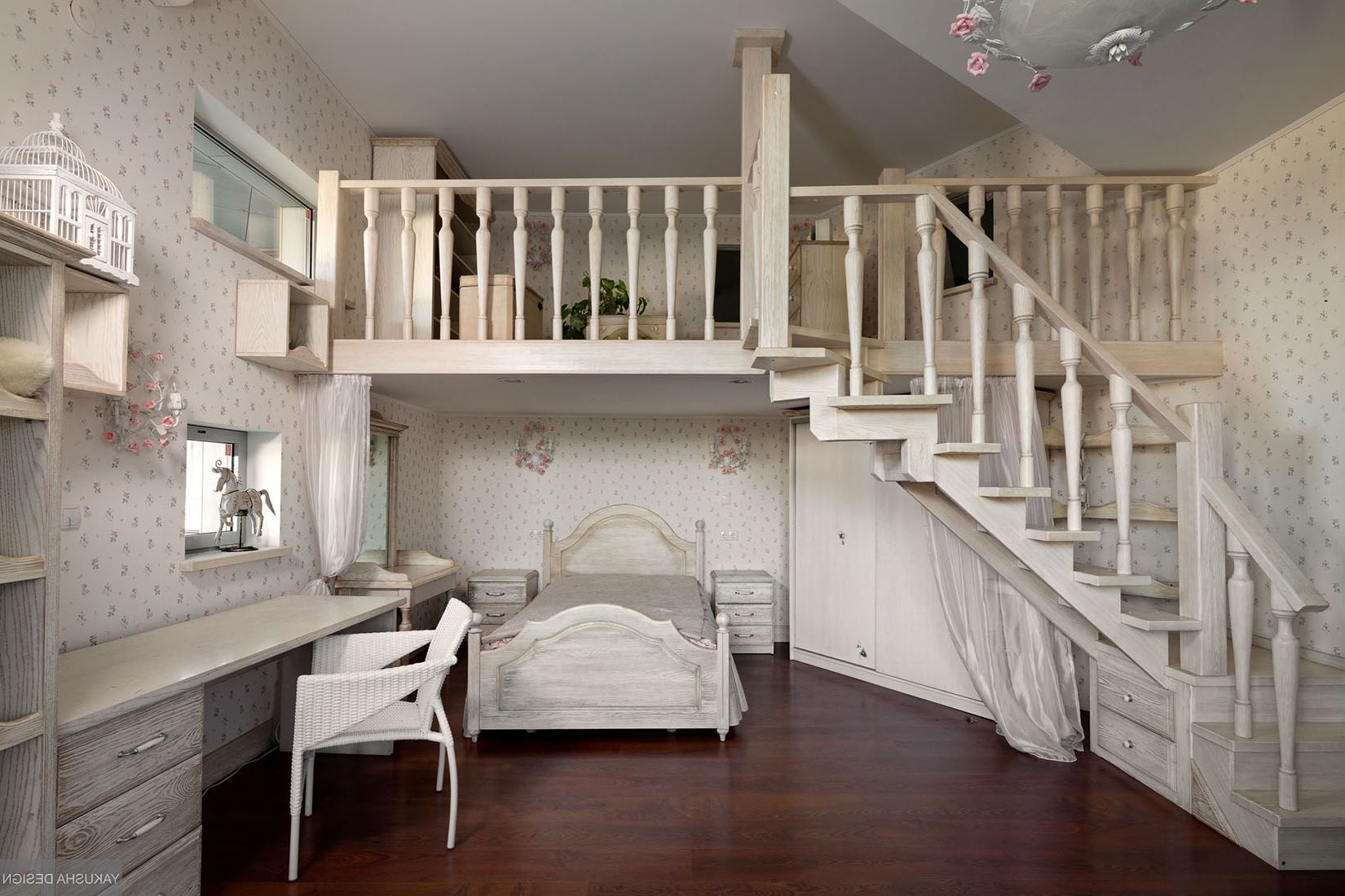 Consider organizing near the wall of the transition area along the second tier. Under the platform, a closet with shelves for storing clothes is necessarily arranged. Open shelves will look great along the wall of the second tier. Various decorative elements of room decoration are placed on them. See a selection of photos compiled specifically for you.