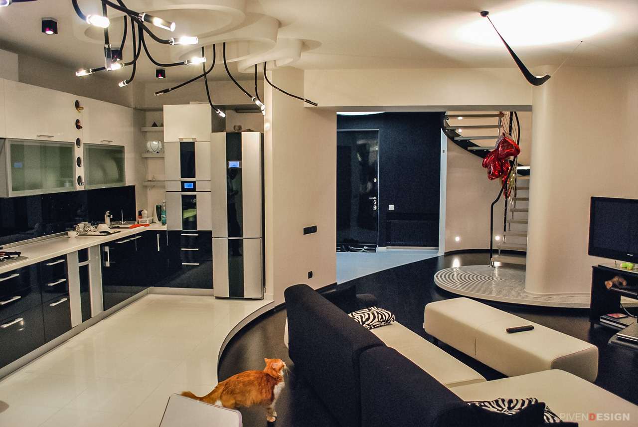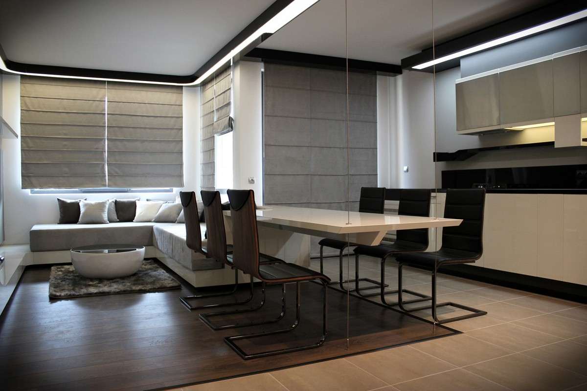 To create a futuristic style, free layouts and studios are most suitable, since futurism requires space. Dividing into zones (work, for rest, for eating, etc.) is best done using a game of color in space and translucent partitions. A single space will create a feeling of spaciousness and balance.