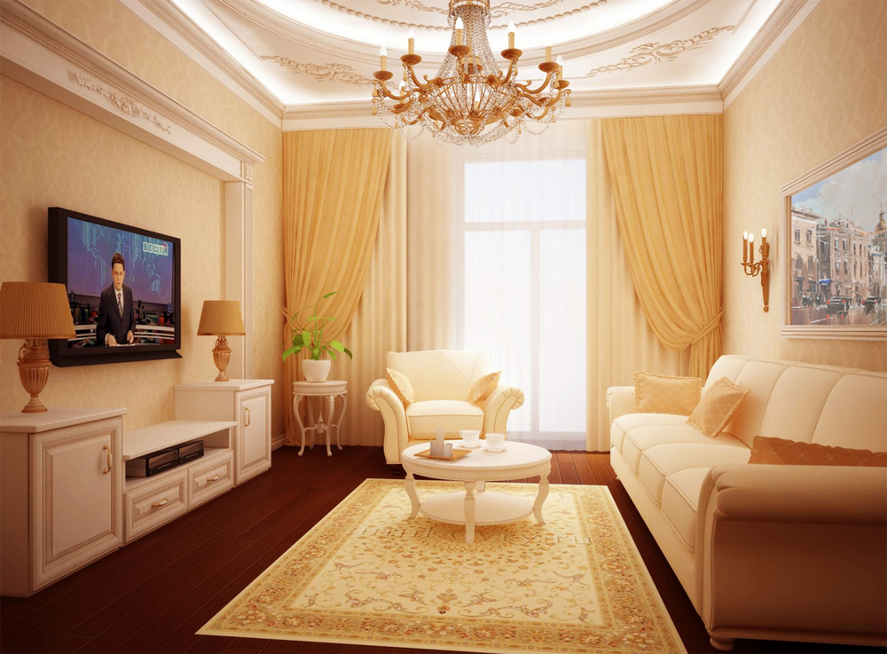 If you are a fan of the classics, then there are suitable design options. interior for a small living room. It is distinguished by neutral and warm colors. A room of this type will only benefit. But the basis will have to make some changes.