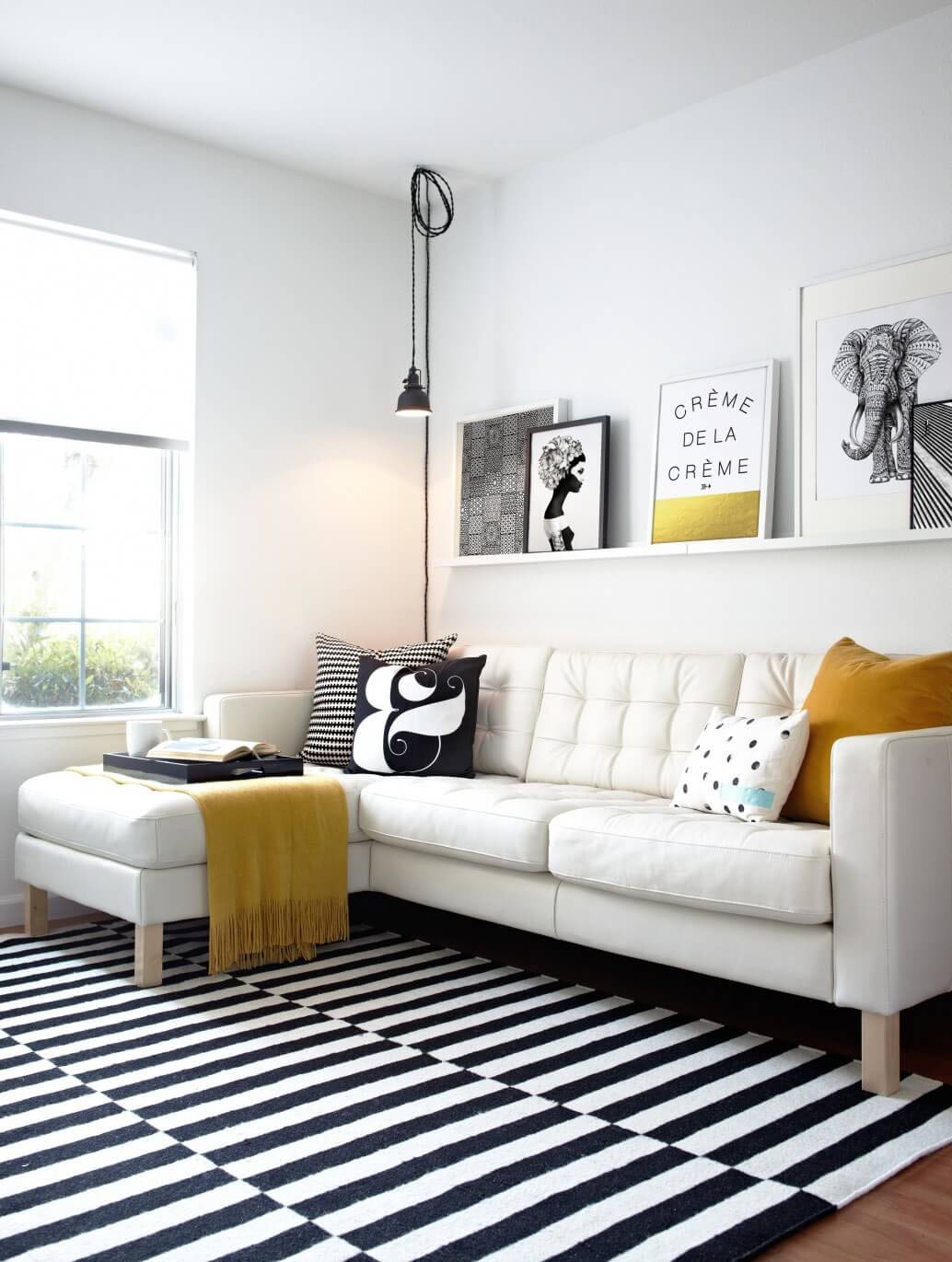 Near the sofa you can put a wall of cubes, they will serve as shelves
