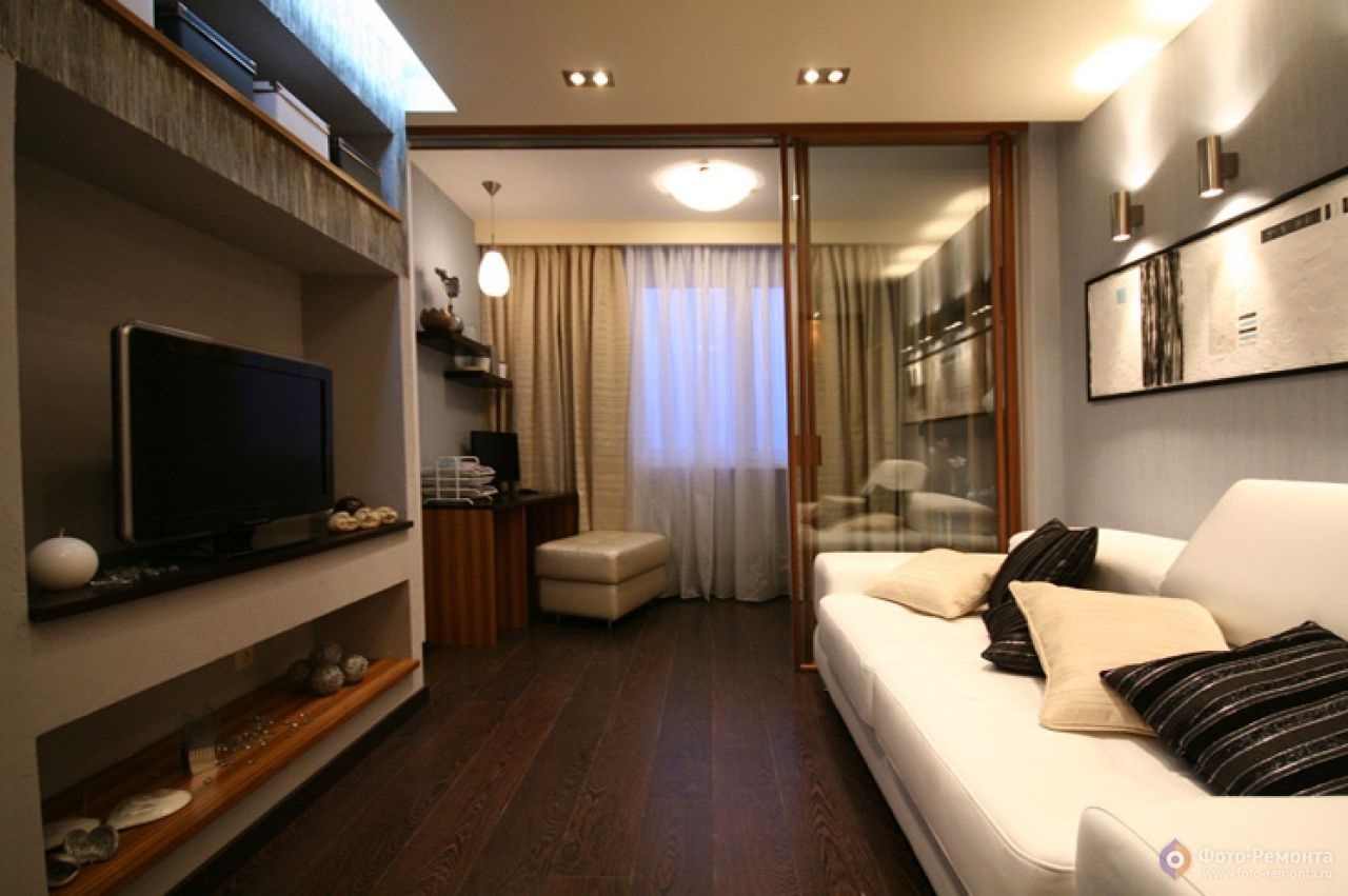 To repair the living room is not too costly, it is better to do it yourself, in stages. They go to specialized companies when there is something lacking qualifications, tools and experience. You can prepare the surfaces for repair, assemble furniture blocks, shelves or partitions from finished parts yourself. It is unprofitable to contact the designer, but the specialist takes into account the specifics of the layout and lighting, the wishes of the customer. But no one forbids using good ideas with a photo of a small living room.