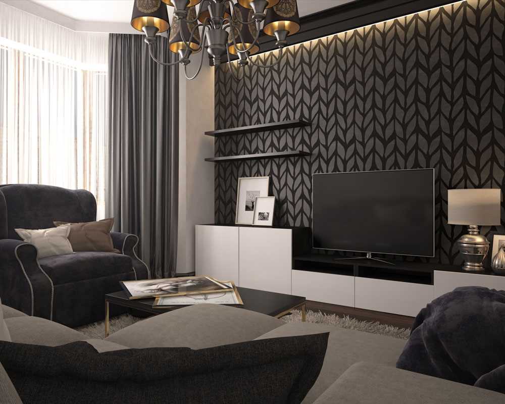 Living room design in dark brown