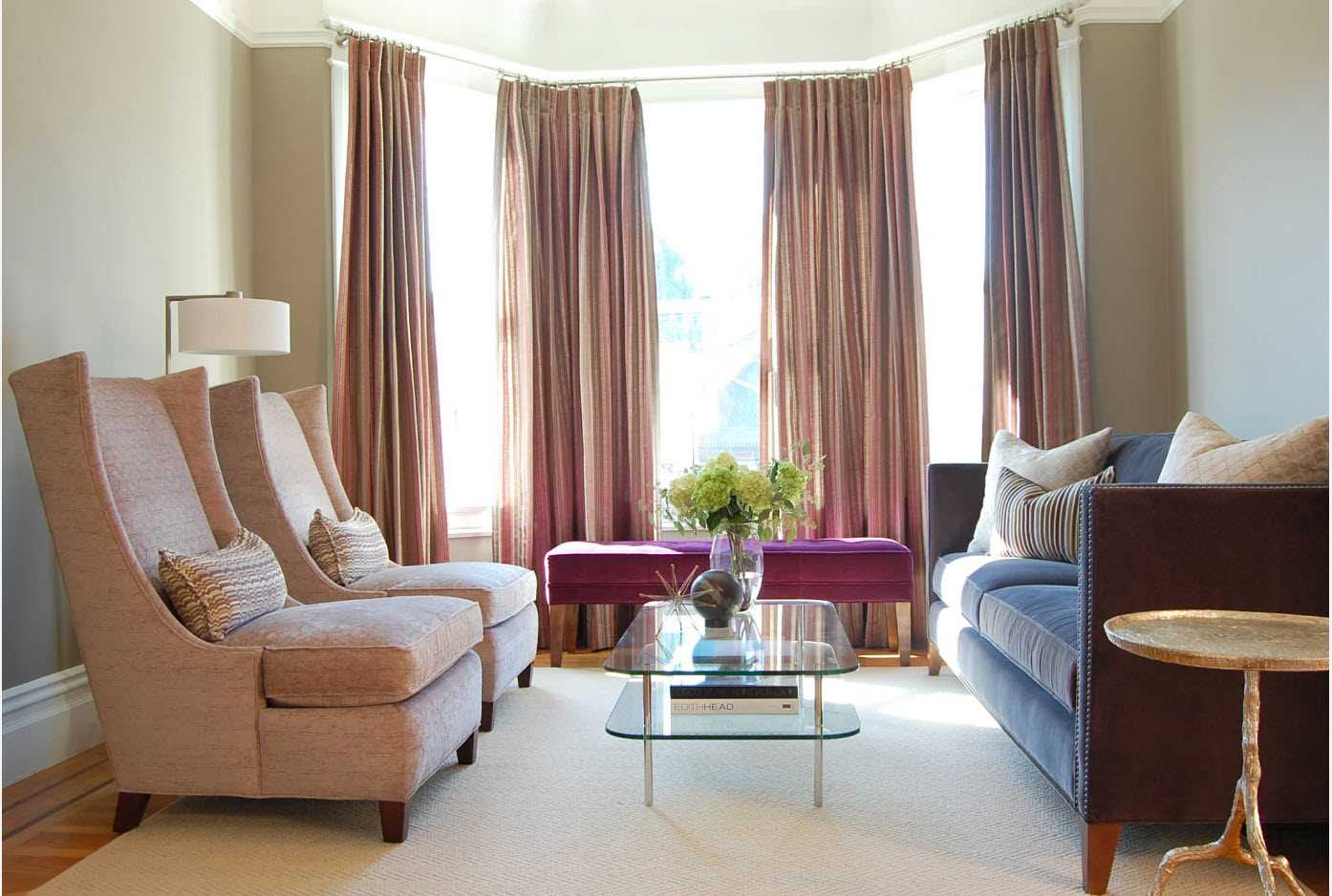 Living room design with bay window