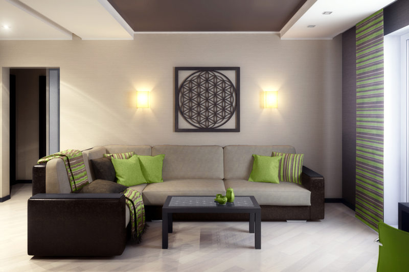 AT room design 18 sq. m A sofa and two armchairs will fit perfectly. You can complement them with a coffee table and TV. Also looks good in small living room corner sofa. These items of furniture quite enough to create a cozy home atmosphere.